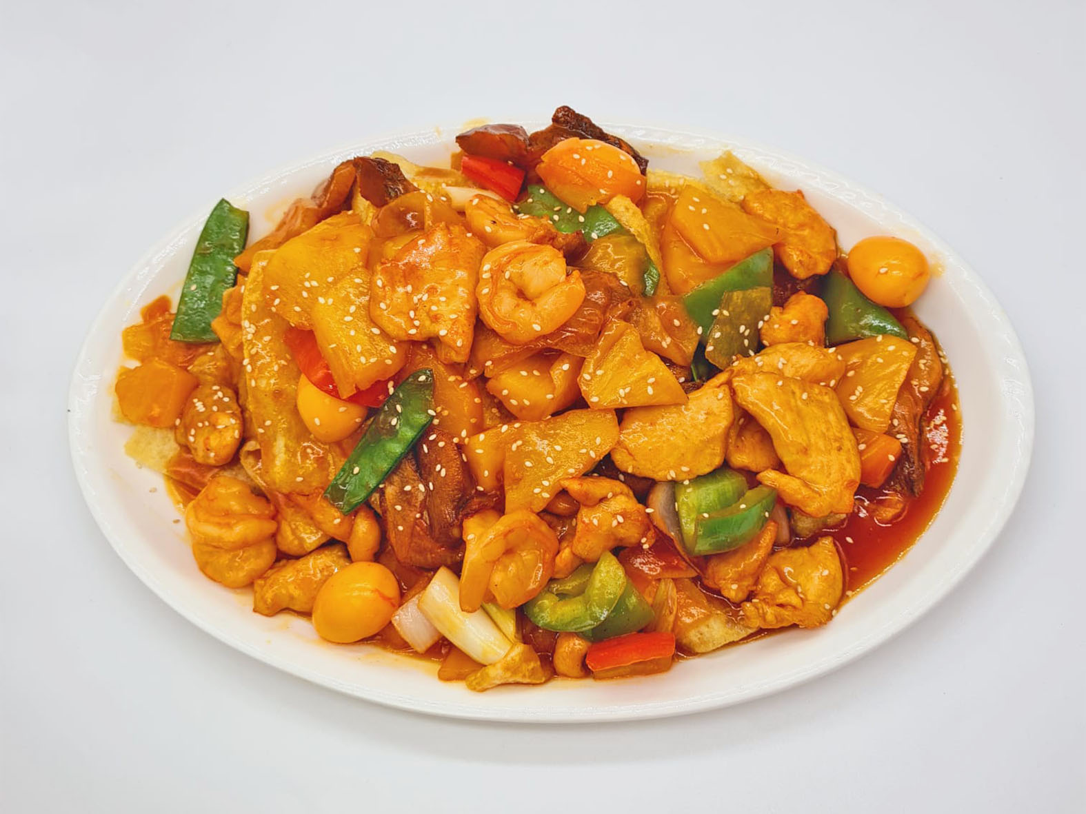 Clásico salteado peruano con carne jugosa, papas y arroz.